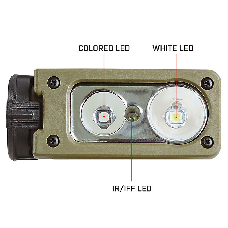 - Har hvide, IR- og farvede LED'er, hver med høj, medium 2, medium 1, lav og strobe-tilstand