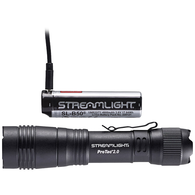 - Verwendung mit einem (1) geschützten, aufladbaren Streamlight SL-B50® Li-Ion-USB-Batteriepack