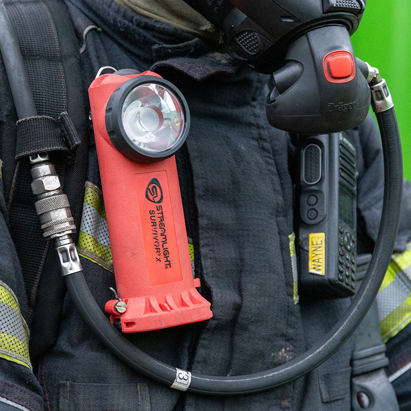 Lista numerów częściKlasa 0, Klasa 20, Survivor® X ma niskoprofilową ramkę, która’nie koliduje ze sprzętem i wyposażeniem. Klips bezpiecznie chwyta się sprzętu, a D-ring pozwala lampie zwisać do przodu, umożliwiając korzystanie z niej bez użycia rąk.